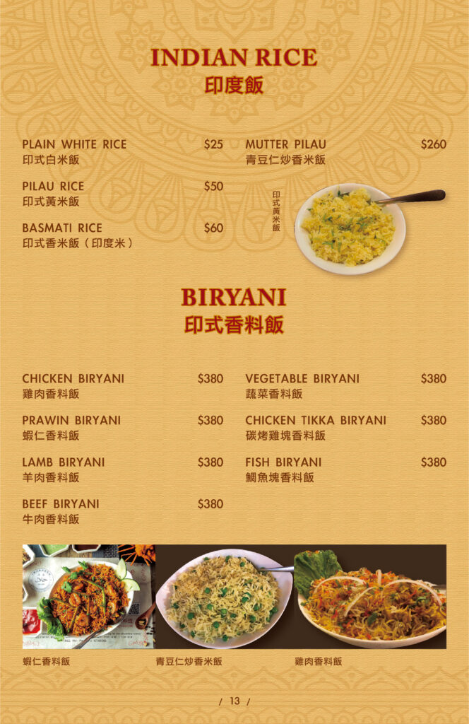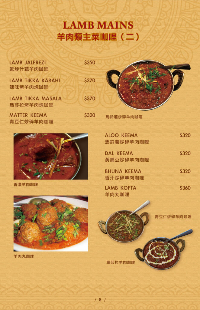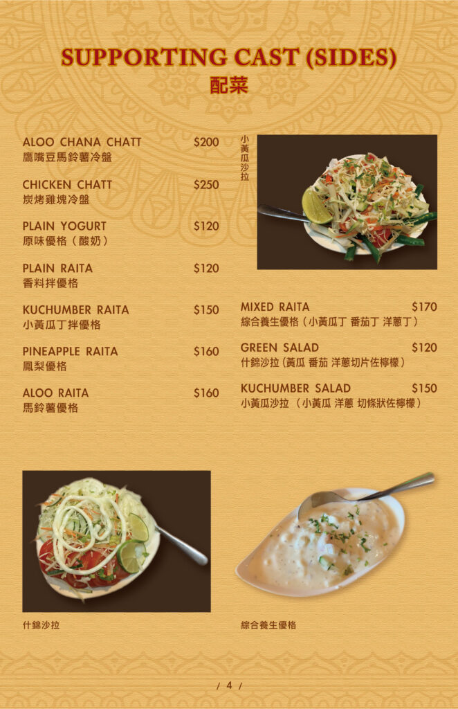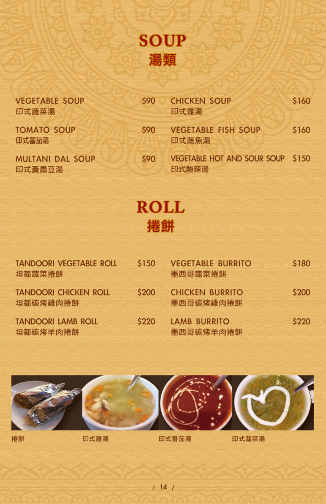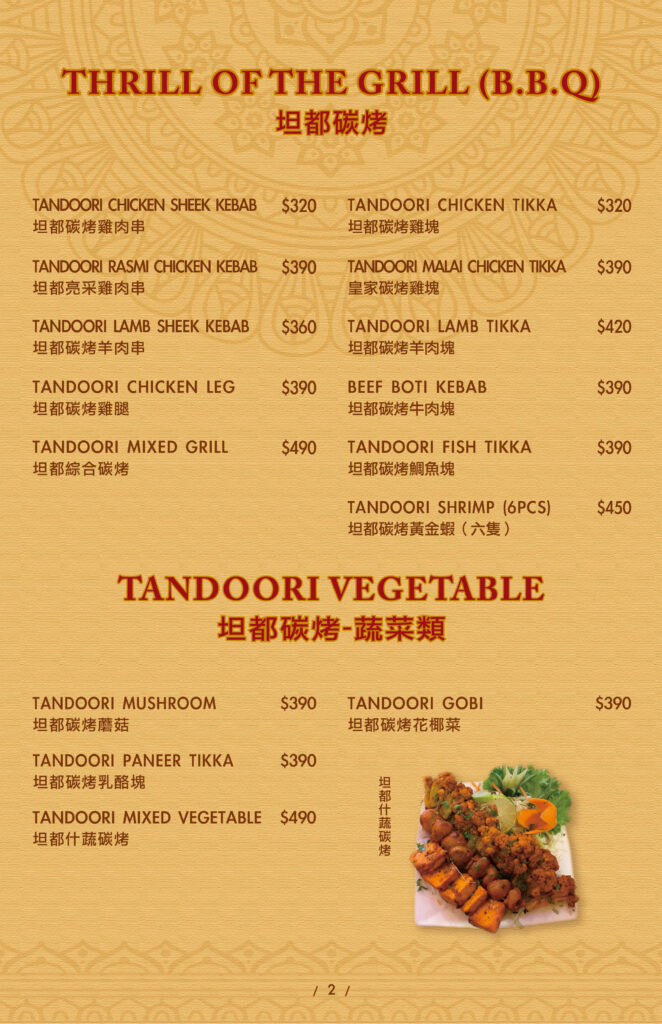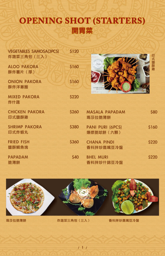 STARTERS SIDES THRILL OF THE GRILL CHICKEN MAINS BEEF & LAMB MAINS VEGETEBLE MAINS SEAFOOD MAINS INDIAN BREAD INDIAN RICE SOUP&ROLL INDIAN DRINKS INDIAN DESSERTS